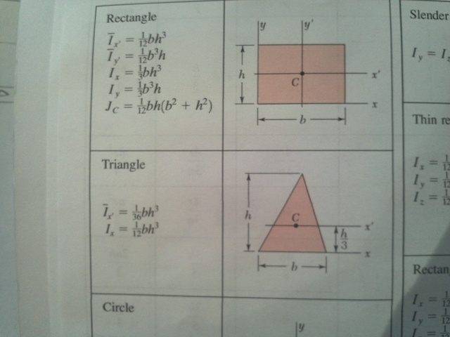 Hi, when deriving ix and iy for a triangle, i know the equation to use is, say for ix ix=int(y^2)da and that i can express y in terms of x so y=f(x) Moment of inertia about a side other than the hypotenuse. Moment of inertia ( i ) is defined as the sum of the products of the mass of each particle of the body and square of its perpendicular distance from the axis. In this video i will find the moment of inertia (and second moment of area), i(y)=?, of a triangle: Let's define the right triangle as having a width w and a height h, rotating about the origin with a uniformly distributed mass of density ρ. If we join another similar triangle of mass m to complete the square we see that its moment of inertia about the given rotational axis would be 121 (2m)(2a2)=3ma2. This engineering data is often used in the design of structural beams or structural flexural members. Thus moment of inertia of half of this square plate would be 6ma2. Since moment of inertia is proportionate to the mass of an object and proportionate to the square of the linear dimensions, we know that. The moment of inertia reflects the mass distribution of a body or a system of rotating particles, with respect to an axis of rotation. The moment of inertia (i) of a body is a measure of its ability to resist change in its rotational state of motion. The area moment of inertia has units of length to the fourth power. A triangle with all three sides of equal length.