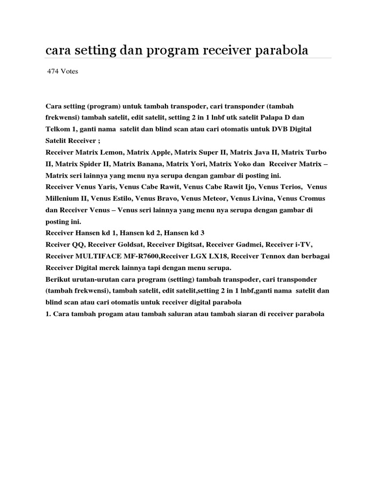 Cara setting receiver parabola venus mirage. Check spelling or type a new query. We did not find results for: Maybe you would like to learn more about one of these?